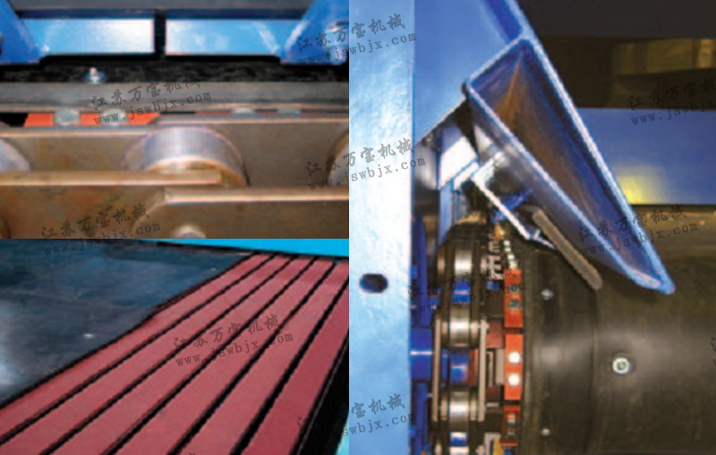 該裝置行走機構的行走輪采用輪胎模式,無須布置固定軌道,可移動到任意位置,使整個進料裝置移動沒有局限性;輸送系統輸送段設計為S形,在卸料處設計一水平段,用于儲存物料;該段托板或托輥可抗較強的沖擊;可通過變頻調速調節喂料量,達到穩流目的;對于質量較輕的物料,設計加長的水平段,滿足幾輛車同時卸貨;輸送帶下T形鏈板,既能協助承受一定的重量,消化吸收物料的沖擊力,又能提高輸送帶的使用壽命;當輸送有塵物料時,整個裝置可設計為廂式,進料口處增加橡膠簾罩,頂部可加設除塵器;當進料車后廂較底時該裝置尾部可加設過渡軌道,過渡軌道設計為折疊式。可輸送多種類型材料,其裝卸能力最大能達到600M3/小時;不需專門的固定設施,不必擴大基礎設施。當不進行作業時,可以遷移所有的設備,對現存的港口運轉影響極小。裝置具有獨立性,如果交易結束,可以自由的遷移,甚至轉賣。強勁的二手市場有效保障其剩余價值從而減少投資風險;
